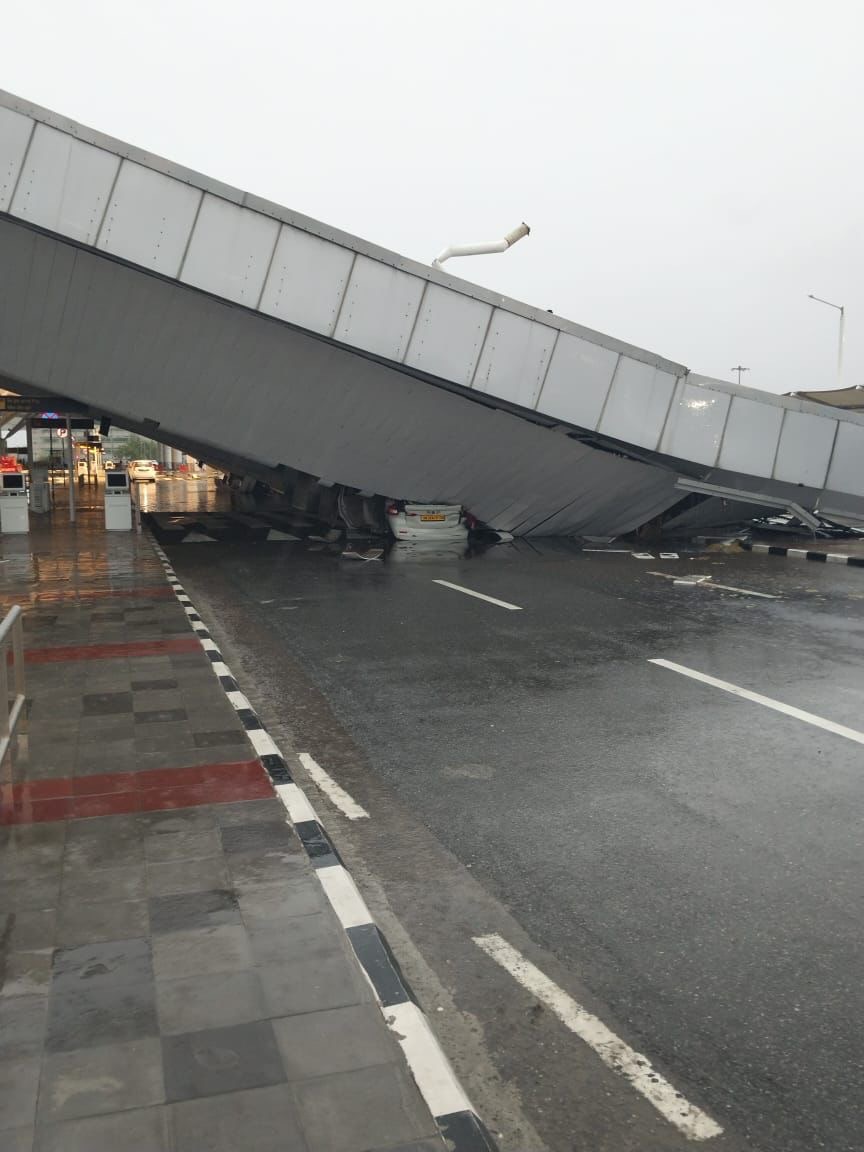 दिल्ली फायर सर्विस (DFS) के अधिकारियों के अनुसार, सुबह के समय टर्मिनल-1 पर घरेलू उड़ानों के लिए पार्किंग एरिया में गाड़ियों की लंबी कतारें लगी थीं। भारी बारिश के चलते पार्किंग की छत अचानक गिर गई। छत का एक बड़ा हिस्सा और लोहे के तीन सपोर्ट बीम गाड़ियों पर गिर गए, जिससे कई गाड़ियां क्षतिग्रस्त हो गईं और अफरा-तफरी मच गई।
